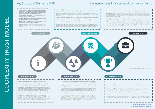 Descargar gratis, Español, Estructuras, Modelo Cooplexity de desarrollo de confianzaReading Time: < 1 minuteLa estructura sistémica es el patrón de interacciones y relaciones entre los diferentes miembros de un equipo. En este cartel DIN A3, seis áreas explican este patrón que condiciona el comportamiento de las personas. Modificar este conjunto de condiciones contextuales generará confianza, compromiso y nuevas formas de relación, redefiniendo lo que puede y no puede suceder.