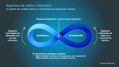 El quinto paso aborda el cambio como movimiento continuo, no como evento. La diversidad cognitiva y la seguridad psicológica son palancas de adaptación organizacional.